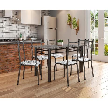 Conjunto De Mesa 1 50m Tampo De Granito Com 6 Cadeiras Lisboa Preto Com Tecido Branco Floral Fabone Outros Moveis Magazine Luiza