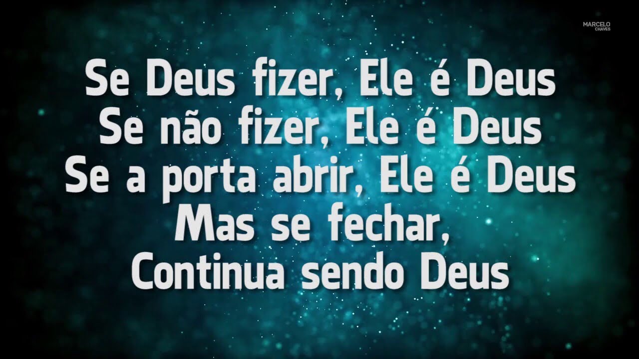 Dele vêm o sim e o amém Somente dele e mais ninguém A Deus seja o louvor 4. Querubins e Serafins diante do trono do. Minha fé não está firmada Nas coisas que podes fazer Eu aprendi a te adorar pelo que és 3. F F9 CE Se Deus fizer Ele é Deus Dm7 C Se não fizer Ele é Deus Bb Am Se a porta abrir Ele é Deus Gm C Mas se fechar continua sendo Deus F9 CE Se a doença vier Ele é Deus Dm C Se curado eu for Ele é Deus Bb C Se tudo der certo Ele é Deus Gm C Mas se não der continua sendo Deus solo. A letra do hino se deus fizer ele é deus A Deus seja o louvor Se Deus fizer ele é Deus Se não fizer ele é Deus Se a porta abrir ele é Deus Mas se fechar continua sendo Deus. Há um tempo eu venho questionando algo a respeito deste assunto é ao ler Isaías 55 verso 8 eu não consegui enchergar o se ele fizer e Deus é se não fizer continua sendo deus. Para mim esta frase que não está na bíblia diga de passagem e uma forma de expressar o reconhecimento da grandeza de Deus. Aprende a tocar el cifrado de Deus É Deus Delino Marçal en Cifra Club. Se Deus fizer ele é. Ele fez moça pobre sentar-se no trono real Pra salvar o seu povo de um homem mau Ele chamou um leigo pra ser pregador Escolheu a cidade menor que havia E uma simples jovem chamada Maria Pra nascer o Salvador do. Gerson Rufino - Ele É Deus Letra e música para ouvir - Antes que o céu existisse Antes que houvesse mundo Ele é Deus ele é Deus Antes da eternidade Antes de qualquer verdade Ele é Deus ele é Deus. Informações relacionadas letra da musica se deus fizer ele é deus discutidas claramente pelo 2018 Últimas Letras. Letra e música de Ele É Deus de Deise do Vale - Está sentado sobre o trono à direita de Deus Pai É adorado pelos anjos que não cessam de louvar.